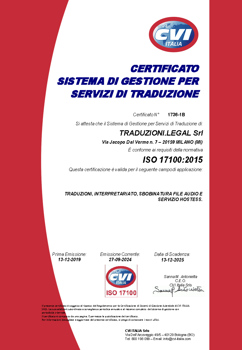 Link alla Certificazione ISO